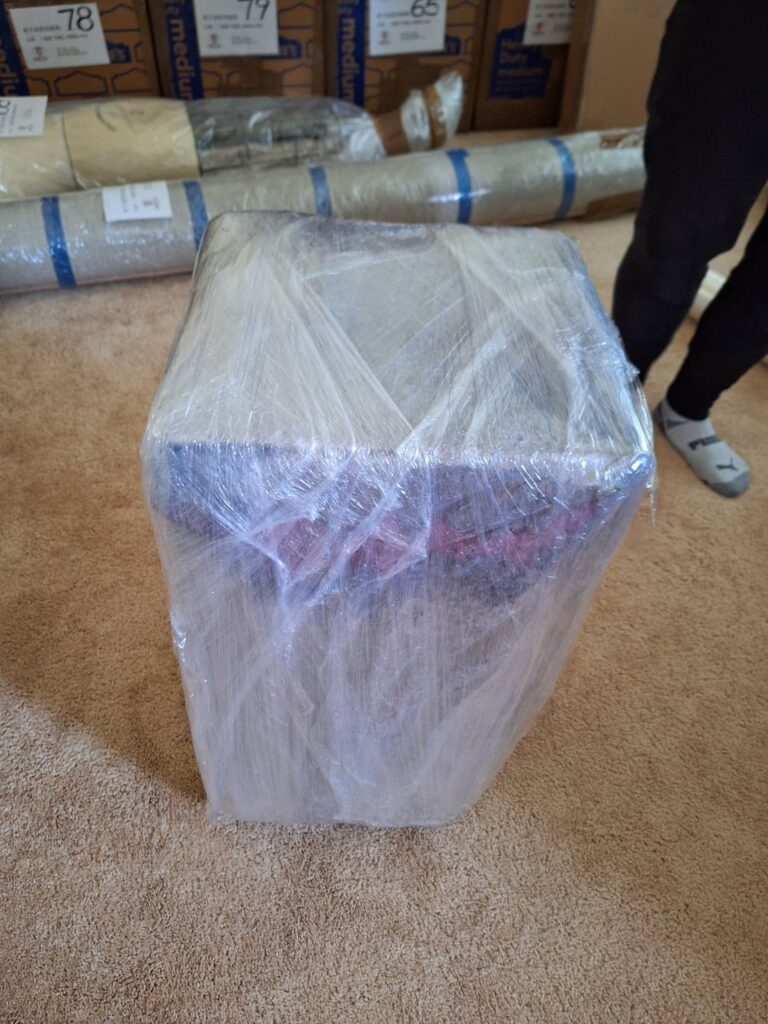 * 家電與家具 →用泡棉將貨品用棉花糖式綑綁 再封紙箱片封膜防碰撞